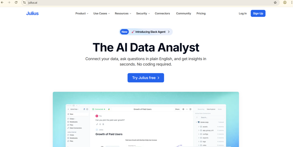 How it works? Link your Excel or paste numbers. Say “Show sales trends.” It makes charts and spots rises or falls. For stocks, it checks past prices and guesses next moves. In 2025 tests, it cut look time by half. From Julius AI site, it links to banks like Stripe for live pulls.