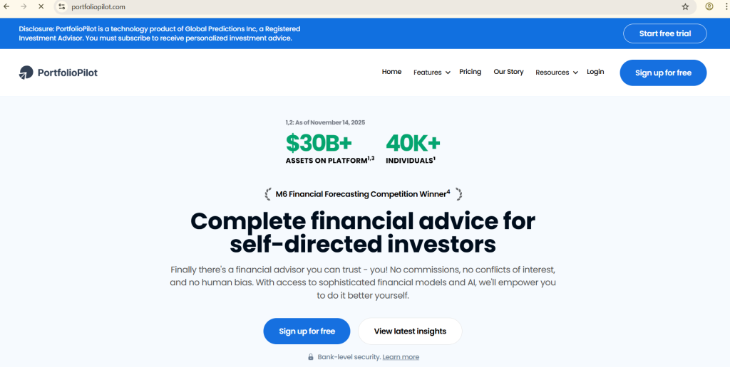 PortfolioPilot tracks all your money spots free. Link accounts, get AI grades on health. Free basic scans for fixes like tax saves.