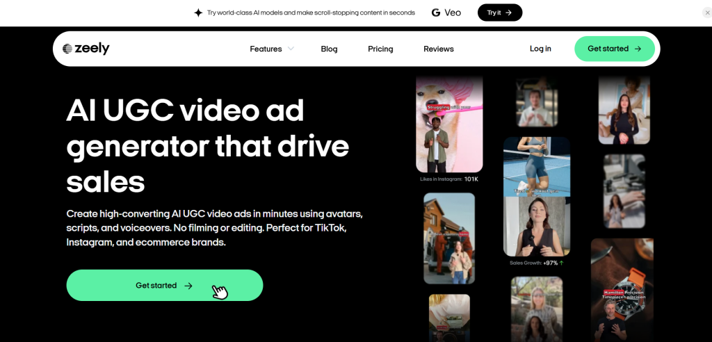 Zeely handles bulk UGC with seamless voices. $49.95/month. High ease-of-use score.